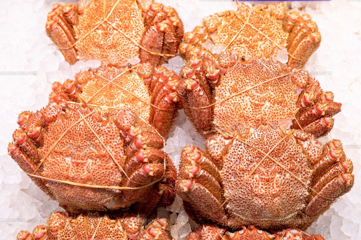 Hokkaido hairy crab (orkegani) dominates Japanese seafood cuisine with its unique spiky body and exceptionally sweet, dense meat harvested from Pacific Ocean and Sea of Japan waters.