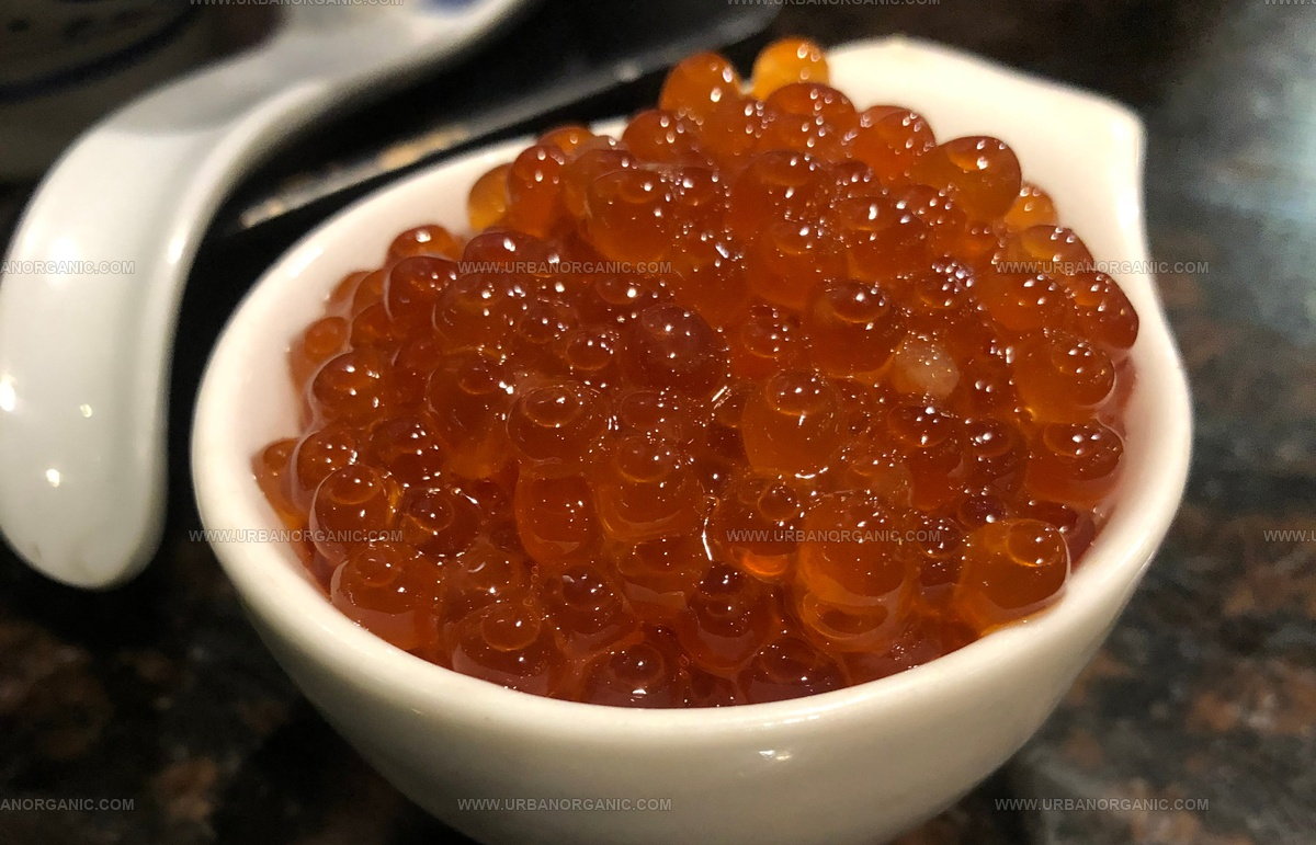 Each salmon egg maintains a delicate membrane that releases a briny pop when consumed.