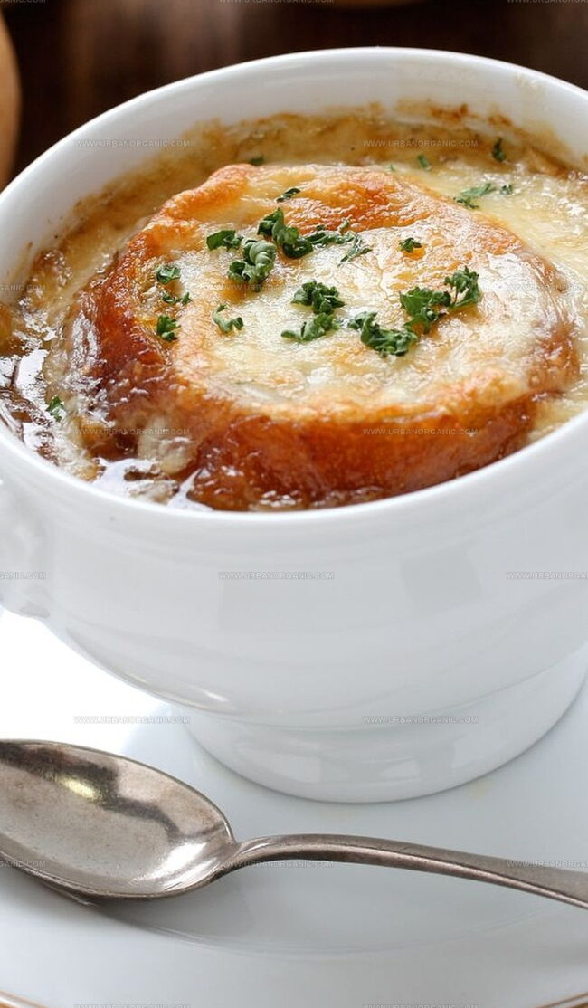 Each steaming spoonful whispers tales of rich broth, silky onions, and golden-crusted cheese melting sensuously.