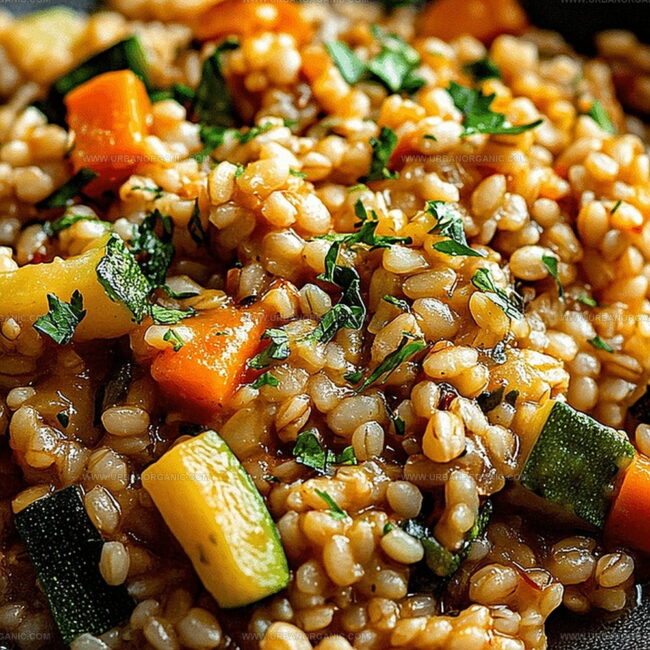Creamy Pearl Barley Vegetable Risotto brings Mediterranean comfort to your table with wholesome grains and garden-fresh ingredients. Rich textures and delicate herbs invite you to savor each comforting spoonful of this hearty Italian-inspired dish.