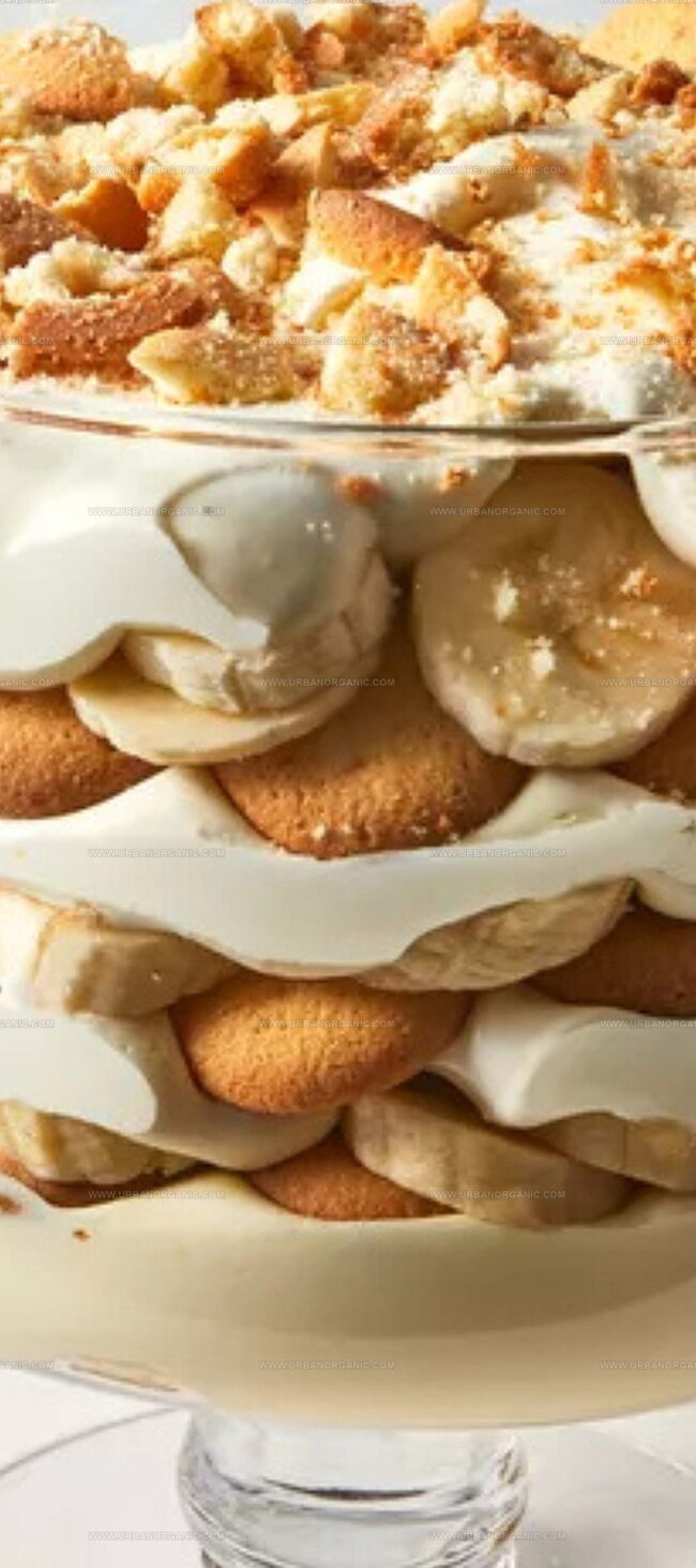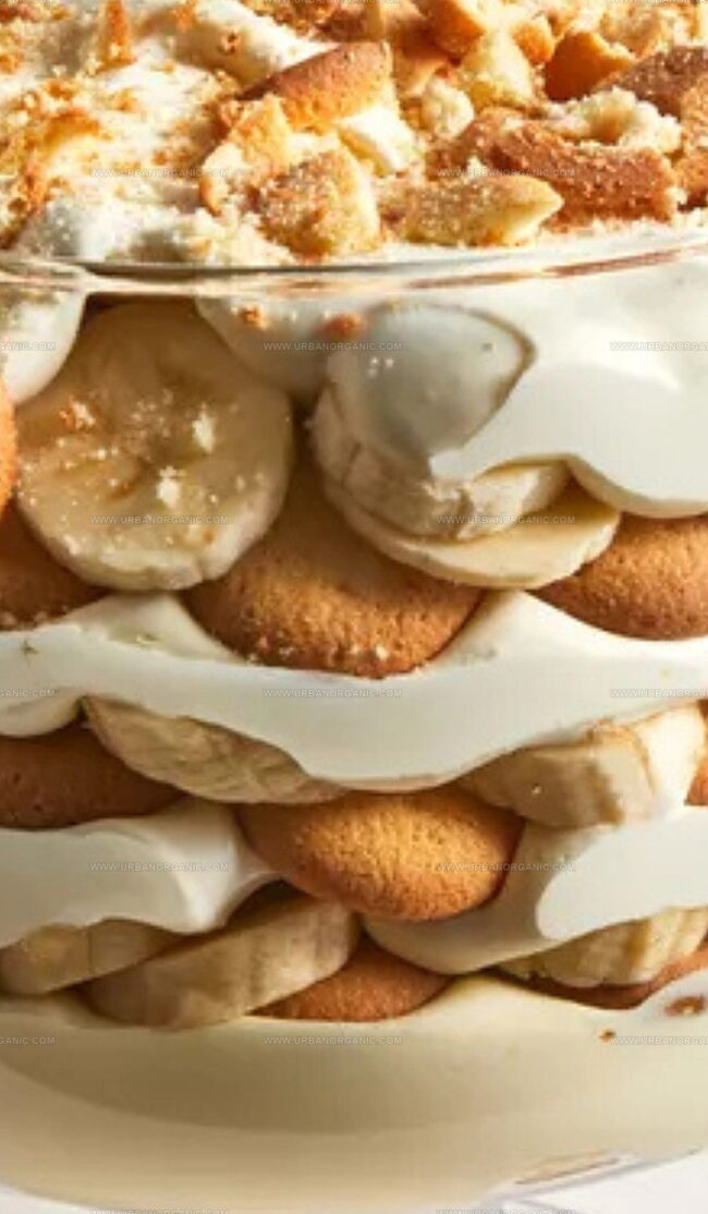 Luscious layers of silky cream, ripe bananas, and crunchy cookies cascade together in a harmonious blend.