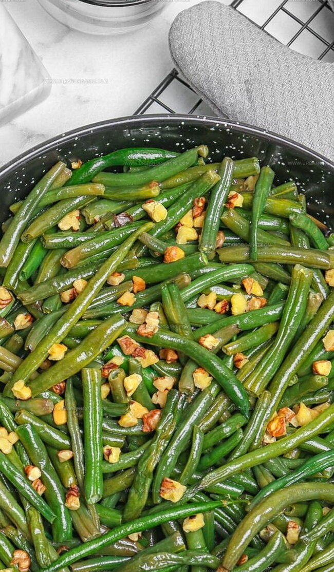 Introduce blanched green beans to the shallot-infused pan. Toss and warm them for a few minutes, ensuring they remain tender yet maintain a delightful crunch.