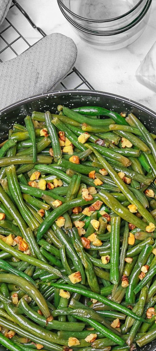 Transfer the green beans to a serving platter. Sprinkle the toasted almonds on top for a delightful crunch. Bring to the table immediately while still warm, ready to impress and delight.