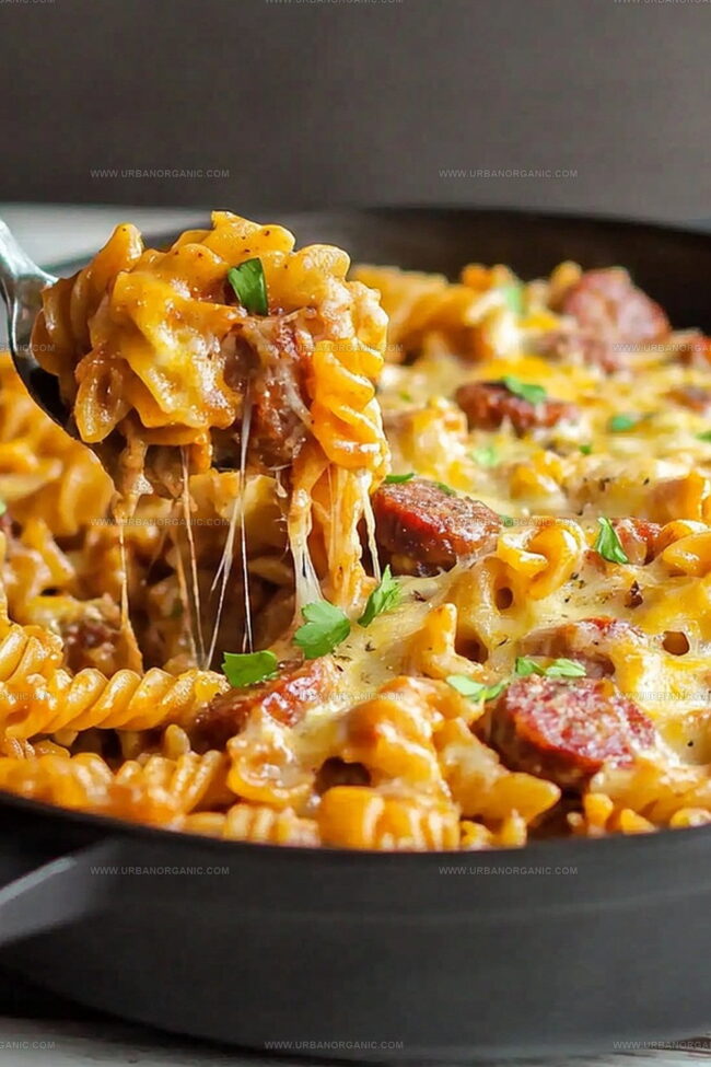 Hearty one pot cheesy smoked sausage pasta skillet delivers comfort straight from a rustic kitchen, blending smoky sausage with creamy cheese and perfectly cooked pasta. Satisfying flavors meld together, promising a delightful meal you’ll savor down to the last delicious bite.