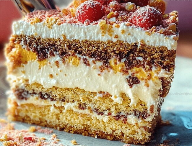 Continue alternating between cookie layers and cream mixture. Stack until you’ve used all ingredients or reached your desired height.