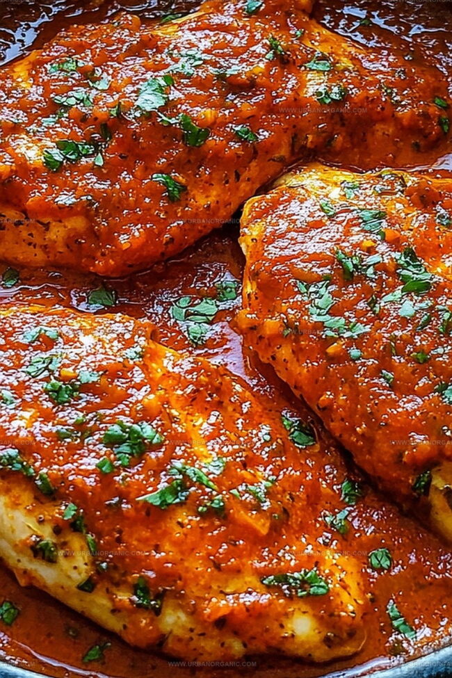 - Gently return chicken to the skillet, coating each piece with the vibrant red pepper sauce.