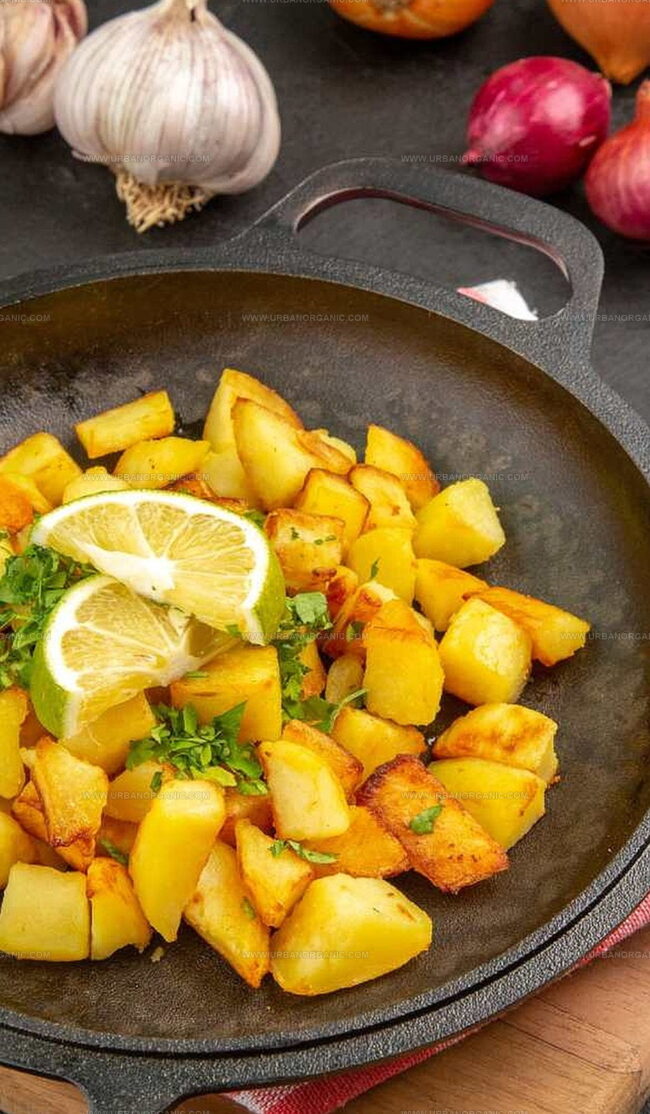 Transfer your golden potato masterpiece to a serving platter. Splash some remaining pan juices on top for extra shine. Sprinkle fresh herbs or squeeze a lemon wedge for a bright, final touch.